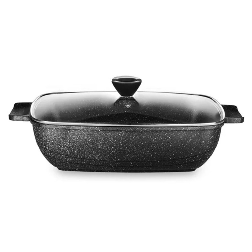 سایر توضیحات ظروف تک کاندید روستر مستطیل نوع درب: پیرکس ساختار بدنه: آلومینیوم آلیاژی پوشش داخلی: گرانیت روستر سایز 36 (ارتفاع 10 سانتیمتر / وزن:2300 گرم) درپوش دارای سوپاپ برای خروج بخار