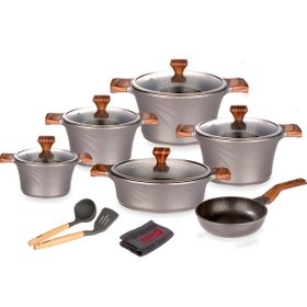 این سرویس شامل یک عدد قابلمه سایز ۱۶، یک عدد قابلمه سایز ۲۰، یک عدد قابلمه سایز ۲۴، یک عدد قابلمه سایز ۲۸، یک عدد تابه دودسته