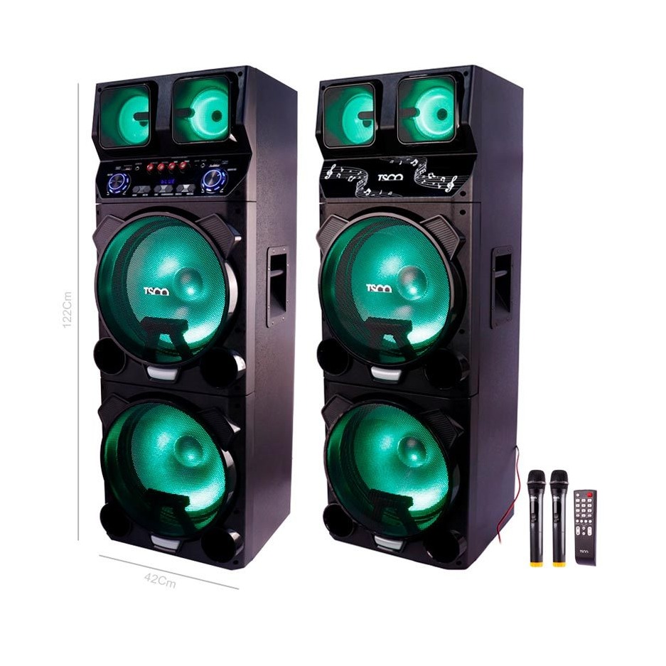 TS 2091 تشکیلشده از دو اسپیکر حرفهای با وزنی حدود 23kg برای هرکدام از اسپیکرها،4ساب ووفر کربنی 15 اینچی برای تولید صدای بم ،2 میدرنج 3 اینچی و 2 توییتر 3 اینچی برای ساپورت صدای زیر است که این ترکیب درمجموع توانی معادل 200 وات را برای تولید صدایی سوپر بیس و خارقالعاده فراهم میکند. در قسمت جلویی اسپیکر TS 2091 شاهد چندین پورت ورودی و خروجی هستیم. این پورتها در جلوی دستگاه تعبیهشدهاند تا کار کنترل آن را برایتان راحتتر کند. شما میتوانید جزئیات کار با صفحه کنترل اسپیکر حرفهای تسکو مدل TS 2091 را از طریق دفترچه راهنمای موجود در کنار اقلام همراه آن، مطالعه کنید. اسپیکر حرفهای تسکو مدل TS 2091 مهمانی گرمکن واقعی است. این روزها یک مهمانی پرشور، بدون دست گرفتن میکروفون و آواز خواندن کامل نمیشود. اسپیکر حرفهای تسکو مدل TS 2091 با توان واقعی 200 واتی و دو پورت ورودی میکروفون یک سیستم صوتی قدرتمند است و خواندن با آن به شما احساس یک خواننده واقعی را القا میکند. اسپیکر حرفهای تسکو مدل TS 2091 پورت ورودی گیتار داشته و میتوانید با آن آهنگهای موردعلاقهتان را بنوازید و از برگزاری کنسرت شخصیتان نهایت لذت را ببرید. 4 ساب ووفر 15 اینچی (38 سانتیمتری) این اسپیکر میتواند به معنای واقعی کلمه درودیوار خانه شما را بلرزاند. عملکرد عالی و صدای بلند این ساب ووفرها مناسب کسانی چون صاحبان باشگاهها است که نیاز دارند موسیقی را با صدای بلند پخش کنند. اسپیکر ایستاده تسکو مدل Ts 2091 یک اسپیکر قدرتمند و مناسب فضاهای بزرگ، مهمانیها و باشگاهها است. این اسپیکر دوقلو مشکیرنگ از پورتهای ورودی و خروجی متعددی پشتیبانی میکند و برای سهولت در استفاده، پورتهای ورودی و خروجی این دستگاه در رو به روی آن تعبیهشده است. این اسپیکر قدرتمند باقدرت تفکیک صدای 128bps و وضوح 70دسیبل، صدای بینقصی در اختیار شما میگذارد.