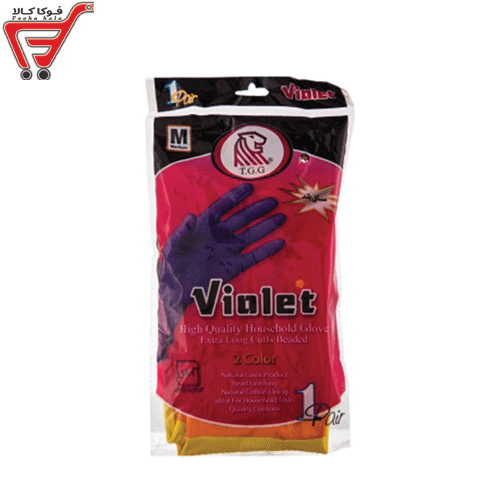 دستکش خانگی ساق بلند دورنگ Large_ویولت