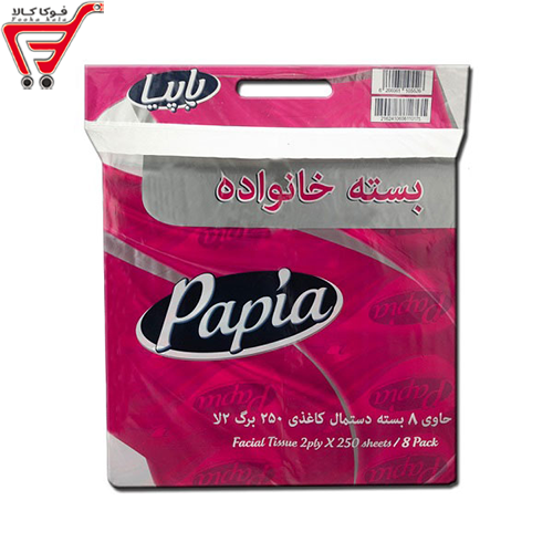 دستمال کاغذی اقتصادی 250برگ دولایه 8 عددی پاپیا
